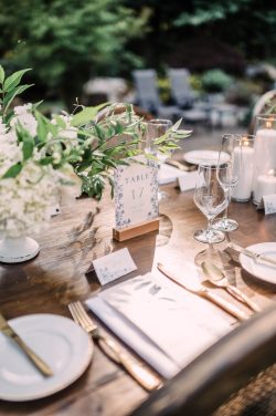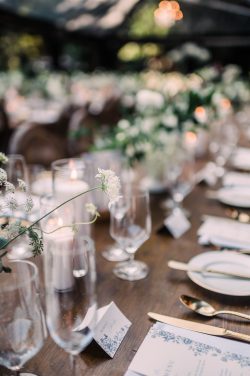 Linens: Crisp NAPKIN WHITE FORTEX 18″X18″ added a clean, classic touch.