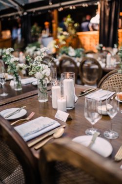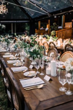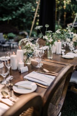 Emily and Jacob’s elegant rustic theme shone brightly through their beautiful dining setup. The natural wood finish of our TABLE 8’X40″ BANQUET KING WOOD and TABLE VINEYARD 8’X40″ tables added warmth and a natural feel.