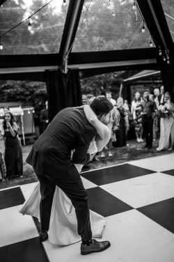 Guests were seated in our charming CHAIR LOUIS RATTAN BACK (145), which brought an element of wicker-texture and refined-rustic comfort to the long feasting tables. The focal point for the evening’s festivities was the bold DANCE FLOOR BLACK/WHITE CHECKERED, where the couple shared their first dance beneath the sparkling chandeliers.